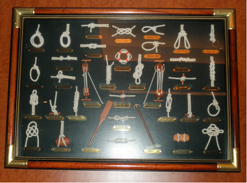 これが色々なロープの縛り方の図である。もっと拡大したかったのだがこれ以上アップにすると画面に入りきらなくなるのでこんなもので我慢してもらうしかない。それにしても色々な縛り方があるものだ、こんなにあったんじゃ、覚えるのは大変だろうと思う。まあほとんどは商船学校時代におぼえるだろうが。中央、上の方にあるのは浮き輪だろう・下のほうにある木の板はボートのオールだろうか。