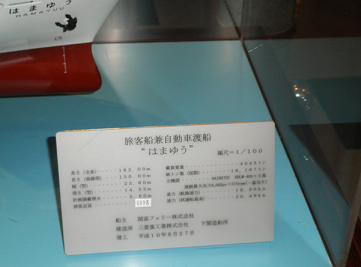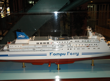 これがぼくが乗った関釜フェリーの船の模型である。純白にブルーのラインの綺麗な船である。